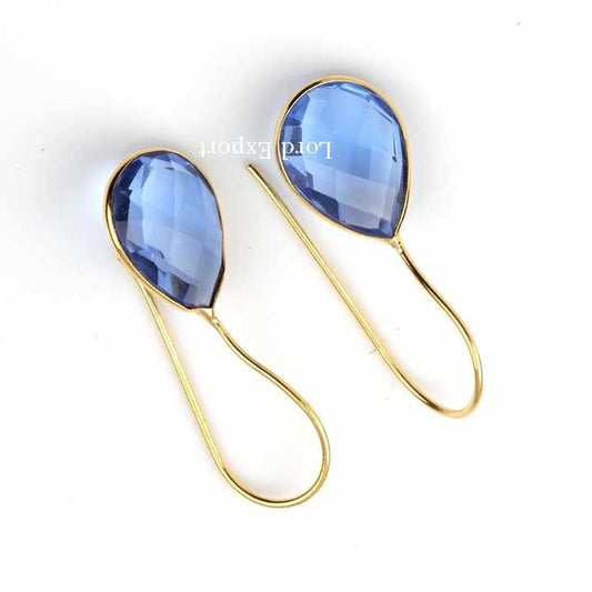 Latest Gemstone Earrings Wholesale Price Natural Tanzanite Quartz Sterling Silver Gold Plated Earrings