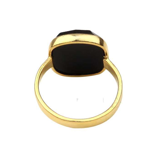 Latest Simple Design New Arrival Trendy Luxury 12mm Black Onyx Gold Plated Sterling Silver Personality Chunky Gem Ring for Women