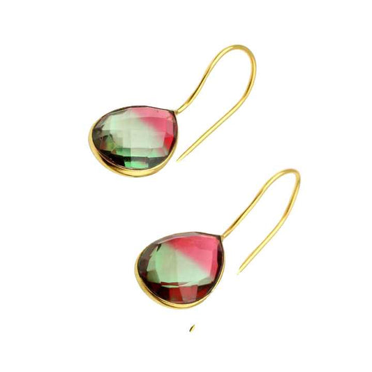 Latest Women Fashion Bi Tourmaline Gemstone Indian Jewelry Earrings Handmade 925 Sterling Silver 18k Gold Plated Dangle Earrings