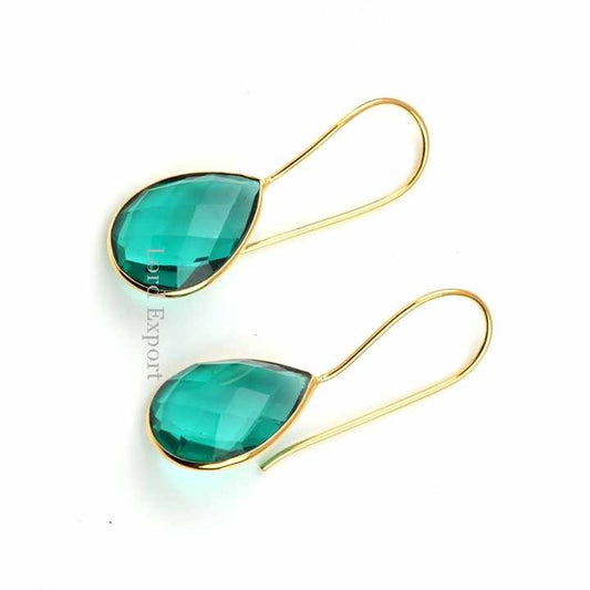 Latest Design Green Teal Hydro Quartz Sterling Silver Waterproof Jewelry 18k Gold Plated Dainty Teardrop Dangle Earrings for Her