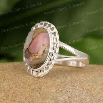 Superb Quality Handmade 8mm Round Pink Copper Opal Gemstone Ring Solid 925 Sterling Silver for Daily Wear for Women