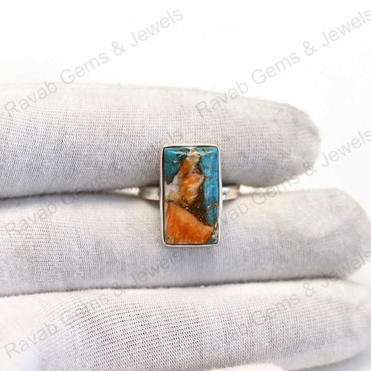 Superb Quality Solid 925 Sterling Silver Mix Oyster Turquoise Rectangle Shape Bezel Setting Ring for Women Fine Handmade Jewelry