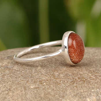 To Quality Brown Sun Stone Oval Cabochon Gemstone 10x14mm Solid 925 Sterling Silver Women Party Wear Simple Jewelry Suppliers