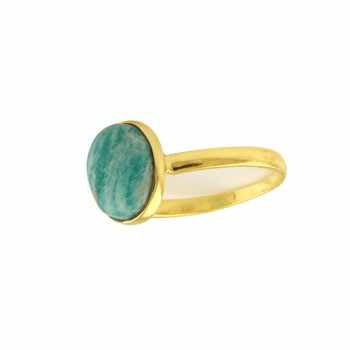 Top Natural Amazonite Gemstone Bezel Ring Minimalist 18k Gold Plated Sterling Silver Stacking Band Simple Elegant Design Women