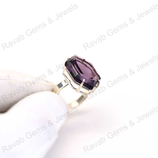 Superb Quality Solid 925 Sterling Silver 10x14mm Amethyst Quartz Hydro Hexagon Cut Gemstone Ring for Women Handmade Jewelry