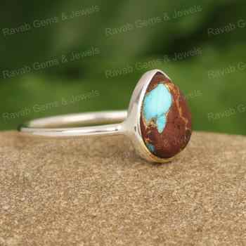 Superb Sell Natural Lava Copper Turquoise Pear Cabochon 10x14mm Solid 925 Sterling Silver Women Handcrafted Classical Ring
