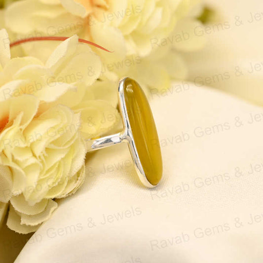 Superb Selling Solid 925 Sterling Silver Yellow Chalcedony Quartz 10x30mm Oval Bezel Setting Ring for Women Handmade Jewelry