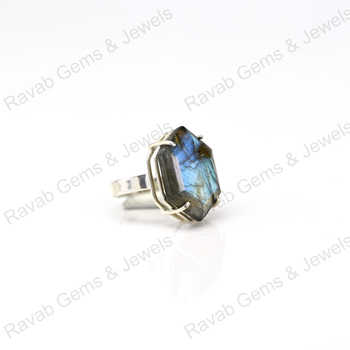 Superb Quality Solid 925 Sterling Silver Natural Flashy Labradorite Hexagon Shape Prong Ring Handmade Fine Jewelry for Women