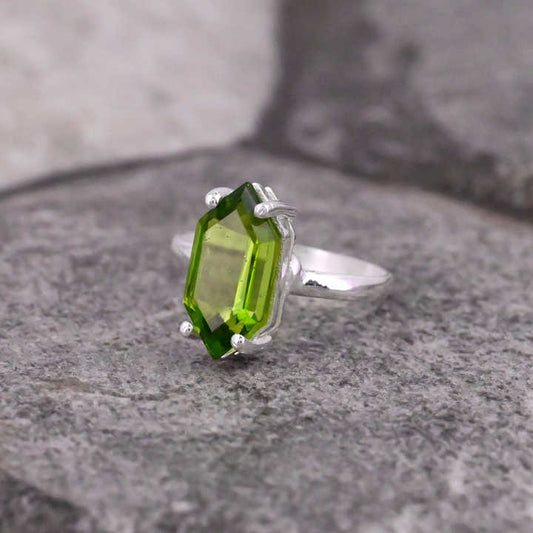 Superb Quality Solid 925 Sterling Silver Green Peridot Hydro Hexagon Shape 12x16mm Prong Setting Ring For Women Fine Jewelry