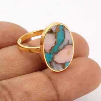 Top Quality 925 Solid Sterling Silver Fine Jewelry Ring for Women Mohave Pink Opal Copper Turquoise 12x16mm Oval Bezel Setting