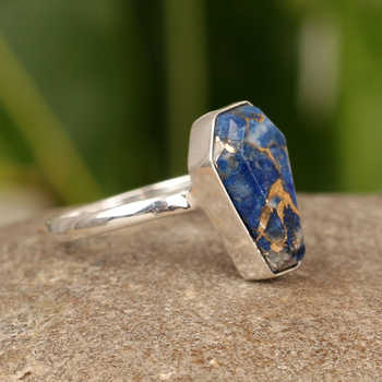 Top Quality Handmade 925 Sterling Silver Mens Womens Ring Blue Copper Lapis Lazuli Coffin Shape Bezel Setting Genuine Fine