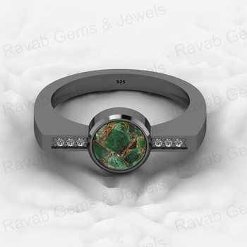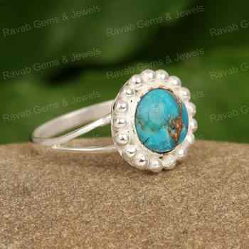 Top Quality Natural Blue Copper Turquoise Round Shape 12mm Solid 925 Sterling Silver Women Handmade Party Wear Ring Jewelry