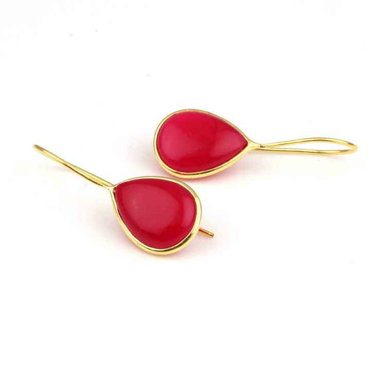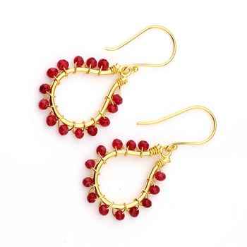 Top Quality 925 Sterling Silver Gold Plated Handmade Trendy Fashion Beaded Drop Earrings Rudy Gemstone Pear Design for Women