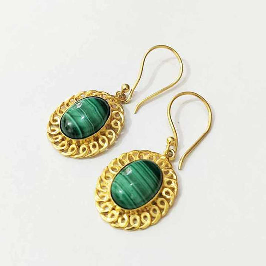 Top Quality Genuine Green Malachite 10x14mm Oval Shape Bezel Setting Solid 925 Sterling Silver 14k Gold Plated Dangle Earring