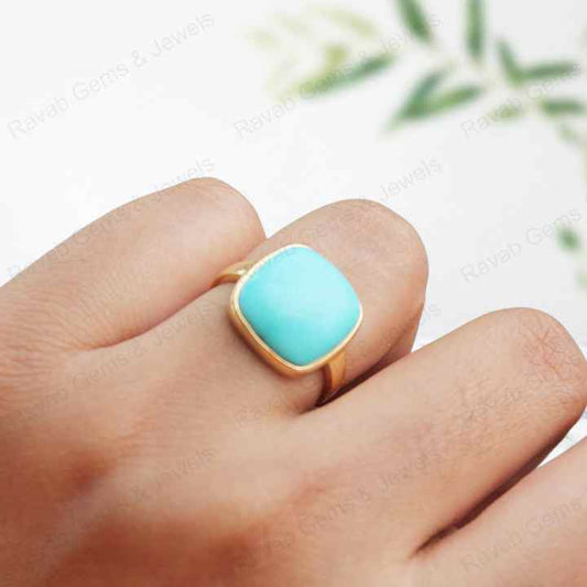 Top Quality Genuine 925 Silver Gold Vermeil Eternity 12mm Arizona Turquoise Gemstone Cushion Dainty Ring Fine Jewelry for Women