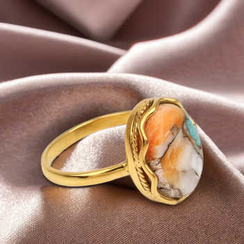Top Quality 10x14mm Spiny Oyster Copper Turquoise Gemstone Bezel Real Sterling Silver Handmade Boho Designer Oval Ring for Women