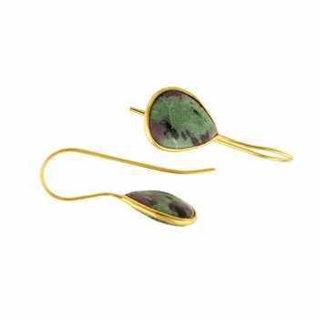 Top Quality Handmade 925 Sterling Silver Dangle Earrings 18K Gold Plated Lovely Ruby Zoisite Natural Gemstone Teardrop Design"