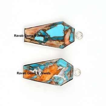 Top Quality Mohave Spiny Oyster Copper Turquoise 925 Silver 10x17mm Coffin Charm Pendant For Bracelet Necklace Fine Jewelry