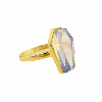 Top Quality 925 Sterling Silver Coffin-Shaped Ring Handmade Opalite Gemstone 18K Gold Plated Fine Jewelry From Indian Supplier