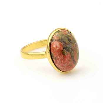 Top Quality 10x14mm Natural Unakite Gemstone Bezel Setting Wholesale Genuine Sterling Silver Gold Plated Oval Shape Ring for Her