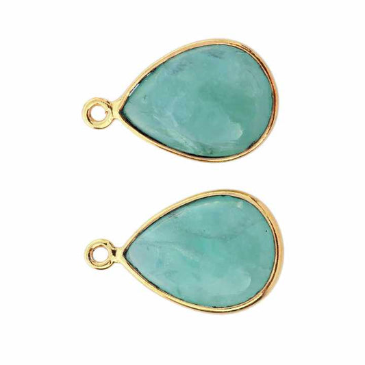 Top Quality 12x16mm Pear Drop Briolette Natural Amazonite Gemstone Bezel Setting 925 Sterling Silver Charms for Pendant Necklace
