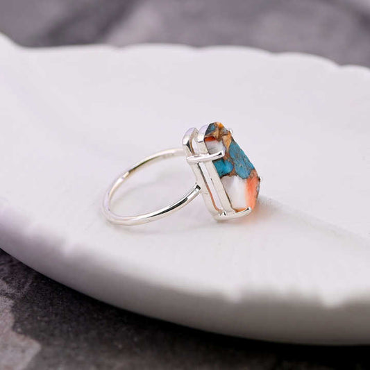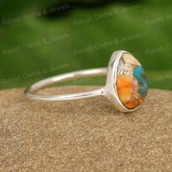 Top Selling 10x12mm Navajo Mohave Spiny Oyster Turquoise Gemstone 925 Silver Bezel Pear Statement Women Ring Fine Native Jewelry