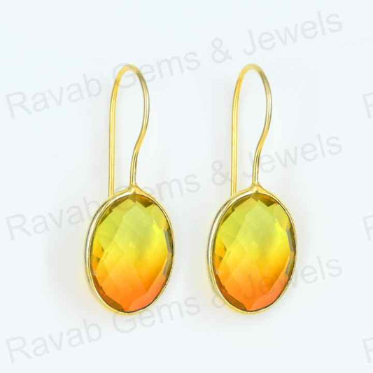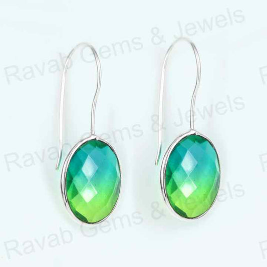 Top Quality Solid 925 Sterling Silver Watermelon Tourmaline Quartz Oval Checker Cut Dangle Drop Earring for Women Fine Jewelry