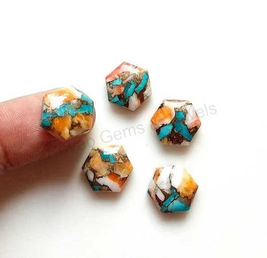 Top Quality Spiny Oyster Copper Turquoise 12x12mm Hexagon Smooth Cabochons Flat Back Gemstone Turquoise Making Gold Jewelry