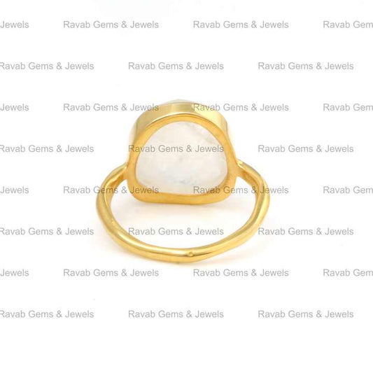 Top Selling 12x13mm Natural Crystal Rainbow Moonstone Gold Vermeil 925 Silver Dainty Uneven Shape Eternity Band Ring for Women