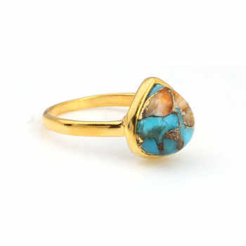 Top Selling 10mm Spiny Oyster Copper Turquoise Stone Bezel 18k Gold Plated 925 Sterling Silver Dainty Heart Ring for Her