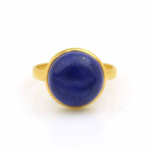 Top Selling 10mm Natural Lapis Lazuli Stone Round Cabochon Bezel Vermeil Eternity 925 Silver Dainty Ring Fine Jewelry For Her