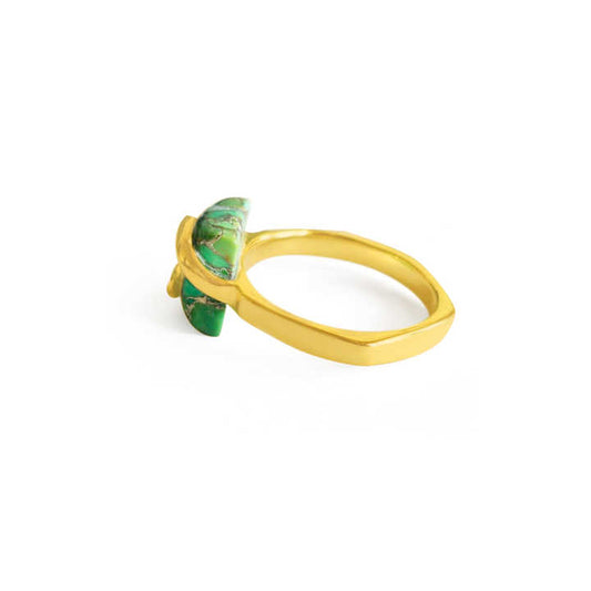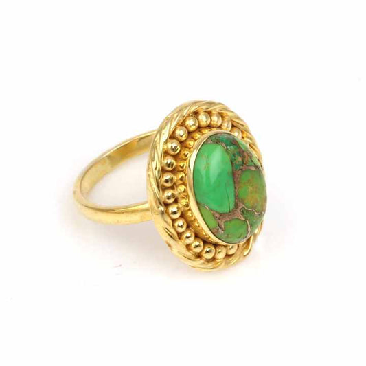 Top Selling 10x14mm Oval Mix Oyster Copper Turquoise Gemstone Ring Women 18K Gold Plated New Arrival Sterling Silver Fine