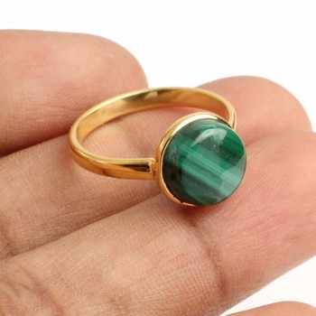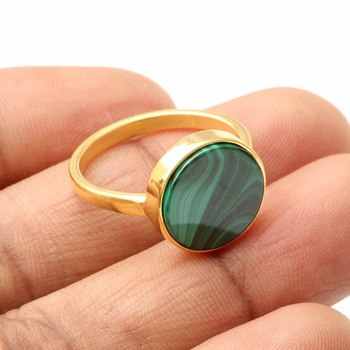 Top Selling 12mm Genuine Malachite Flat Gemstone Jewelry 18k Gold Plated Sterling Silver Handmade Beautiful Dainty Ring for Her