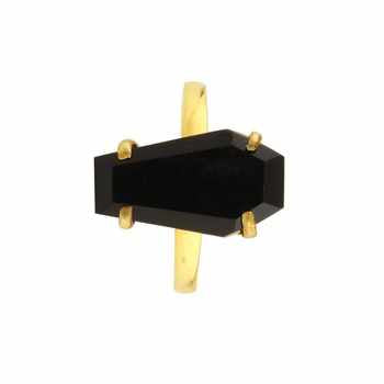 Top Selling 10x17mm Natural Black Onyx Gemstone Minimalist Gold-Plated 925 Sterling Silver Coffin Shape Ring Women Fine Jewelry