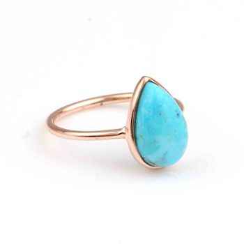 Top Selling 10x14mm Kingman Arizona Turquoise Dainty Ring Her December Birthstone Rose Gold Plated Sterling Silver Beautiful