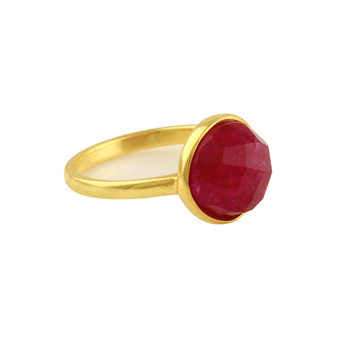 Top Selling 10mm Synthetic Ruby Faceted Gemstone Genuine 925 Silver Gold Vermeil Eternity Fine Jewelry Engagement Ring For Women