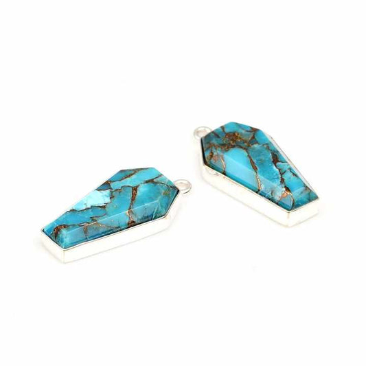 Top Selling 10x17mm Mohave Blue Copper Turquoise Gemstone Bezel Set 925 Sterling Silver Coffin Charm for Pendant and Necklace