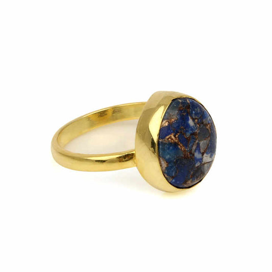 Top Selling 12x13mm Mohave Lapis Lazuli Copper Gemstone Handmade Gold Vermeil Eternity 925 Silver Bezel Women Ring Fine Jewelry