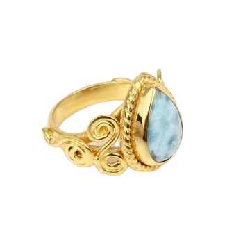 Top Selling 10x14mm Natural Sky Blue Larimar Gemstone Bezel 18k Gold Plated Sterling Silver Designer Bohemian Wedding Ring Women