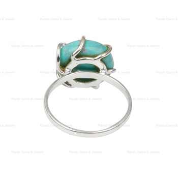 Top Selling 925 Sterling Silver Women's Ring New Design 12mm Kingman Arizona Turquoise Gemstone 6 Prong Setting Dainty Fine