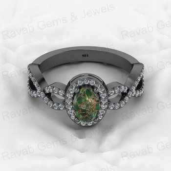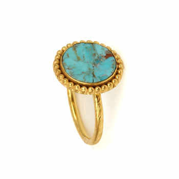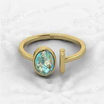 Top Selling Boho Style Women's Fine Ring Handmade 925 Silver Vermeil Natural Pyrite Turquoise Gemstone Cabochon CZ Eternity Oval