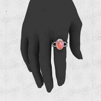 Top Selling 925 Sterling Silver Double Band Ring Women's Beautiful Pink Opal Copper Gemstone 8mm Genuine Fine Jewelry Gift