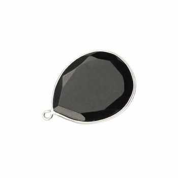 Top Selling 925 Sterling Silver Charm Pendant Connector Necklace 12x16mm Natural Black Onyx Faceted Fine Pendants Charms