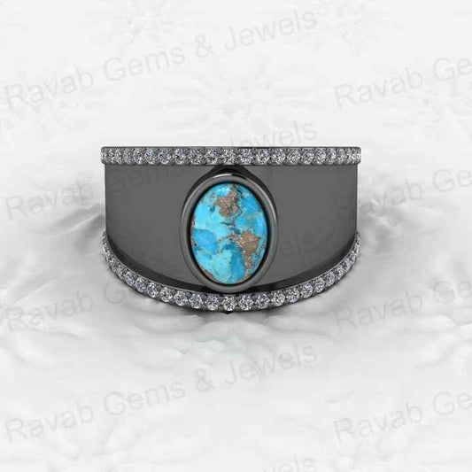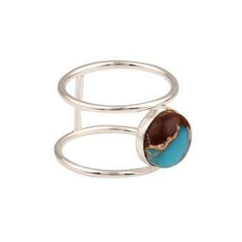 Top Selling 925 Sterling Silver Double Band Ring Mohave Blue Green Azurite Copper Gemstone 8mm Chunky Design for Party Women