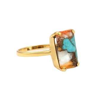 Top Selling Boho Ring for Women Genuine Sterling Silver Dainty Handmade 6x16mm Spiny Oyster Copper Turquoise Gemstone Fine Rings
