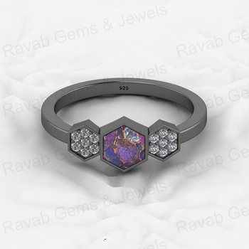 Top Selling 925 Sterling Silver Fine Ring Purple Copper Turquoise Gemstone Bezel Setting With CZ Hexagon Geometric Jewelry