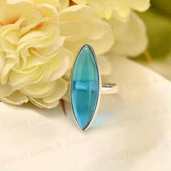 Top Selling 925 Sterling Silver Fine Ring for Women Handmade Blue Topaz Hydro Quartz 10x30mm Marquise Bezel Setting Jewelry
