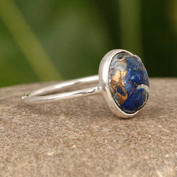 Top Selling 925 Sterling Silver Women's Ring Mohave Lapis Lazuli & Copper Gemstone Bezel 10x17mm Coffin Dainty Fine Jewelry