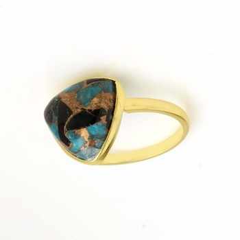 Top Selling 925 Sterling Silver Fine Jewelry Handmade 12mm Trillion Ring Mohave Blue Copper Turquoise Gemstone Unique for