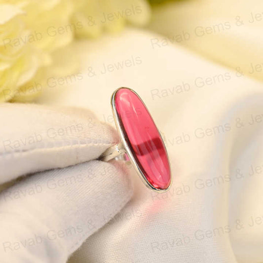 Top Selling 925 Sterling Silver Women's Fine Handmade Ring Pink Tourmaline Hydro 10x30mm Long Oval Bezel Setting